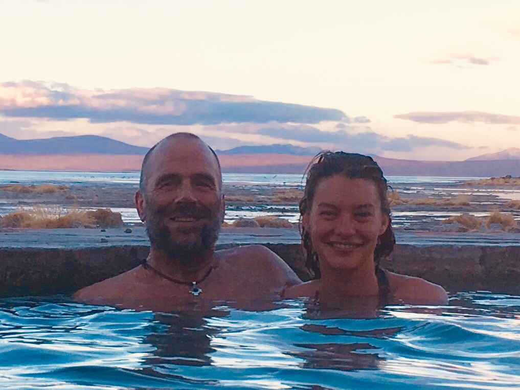A beautiful hour long sunset dip in the Hot Springs (these were ones I visited five years ago and if you read my Nepal blog was where my locket with Namche’s ashes melted off). Pascalle made a big dinner, I drank with the Bolivian guides, and played a little guitar.